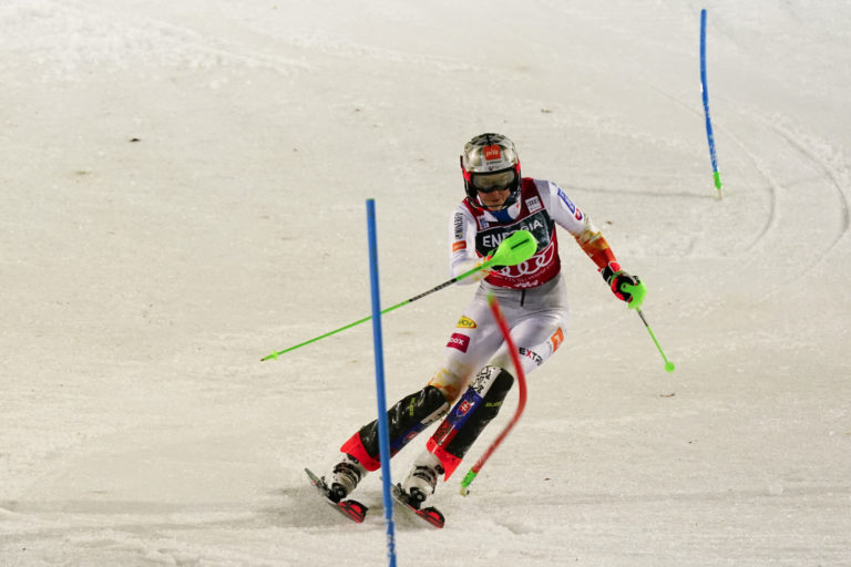 Petra Vlhová na svahu v chorvátskom Záhrebe počas pretekov slalomu Svetového pohára v zjazdovom lyžovaní. Foto: SITA/AP