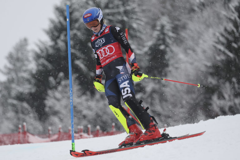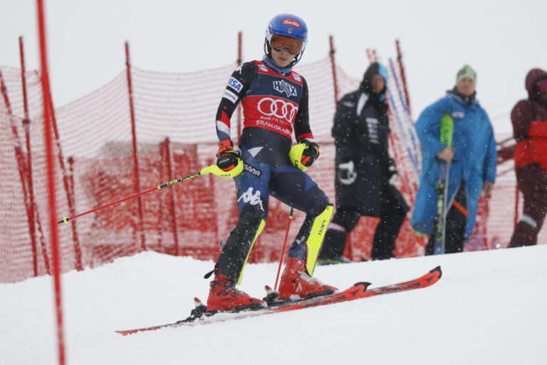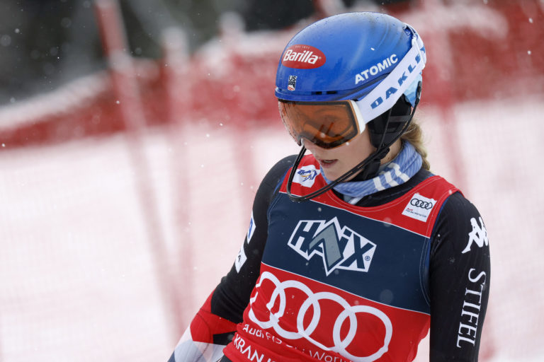 Američanka Mikaela Shiffrinová po vypadnutí v prvom kole nedeľňajšieho slalomu v Kranjskej Gore. Kranjska Gora, 7. január 2024. Foto: SITA/AP.