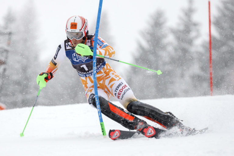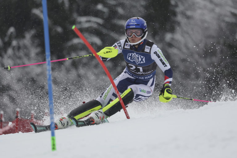 Slovenská lyžiarka Petra Vlhová počas prvého kola nedeľňajšieho slalomu v Kranjskej Gore. Kranjska Gora, 7. január 2024. Foto: SITA/AP.