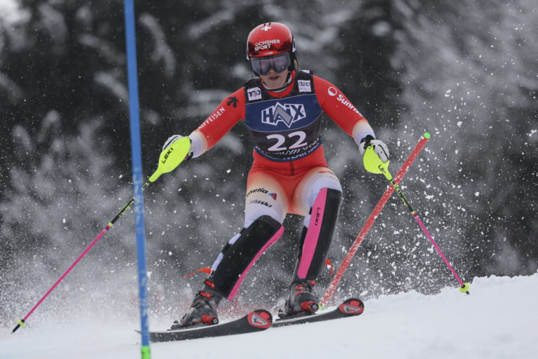 Švajčiarka Melanie Meillardová počas prvého kola nedeľňajšieho slalomu v Kranjskej Gore. Kranjska Gora, 7. január 2024. Foto: SITA/AP.