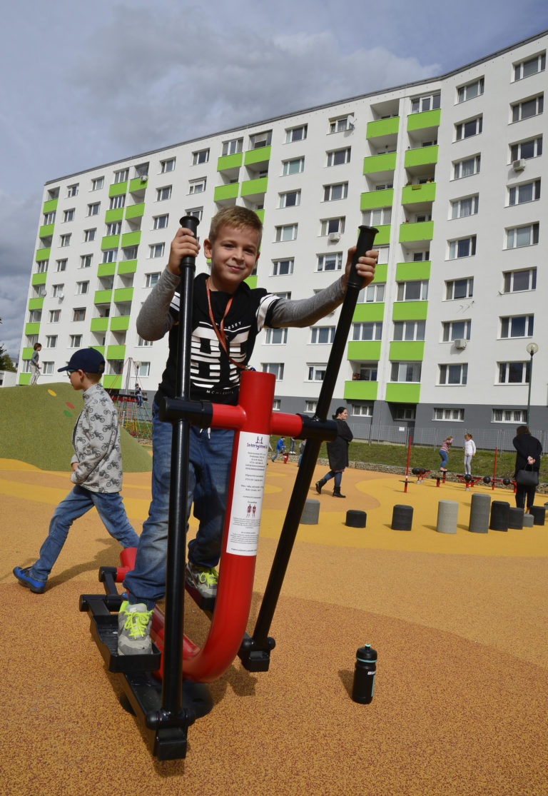 Hrajúce sa deti počas oficiálneho otvorenia petržalského športoviska JAMA. Bratislava, 4. október 2017. Foto: SITA/Štefan Laktiš.