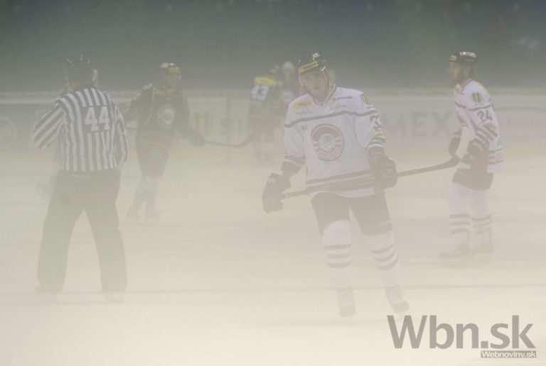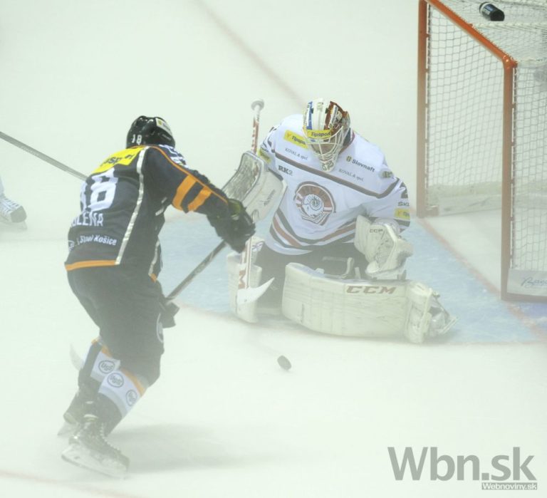 Pohľad na hráčov počas zápasu 5. kola hokejovej Tipsport extraligy medzi HC Košice - HC'05 Banská Bystrica, ktorý sa odohral v hmle a za orosenými plexisklami. Košice, 21. február 2014. Foto: SITA/Ivan Fleischer