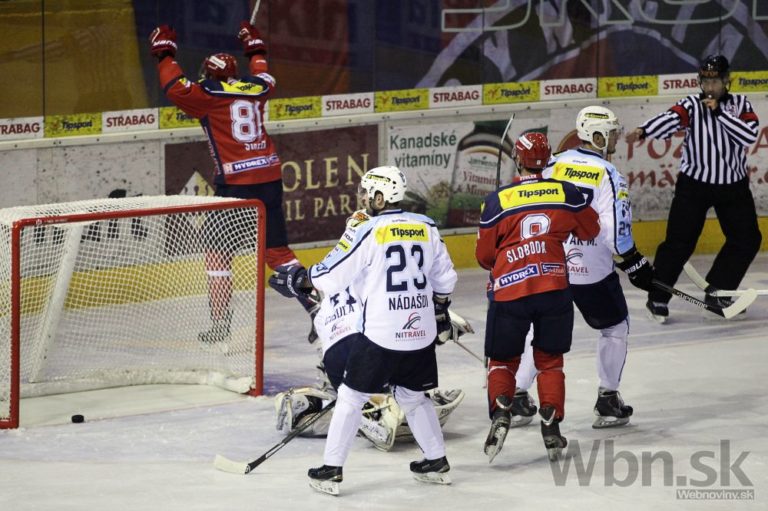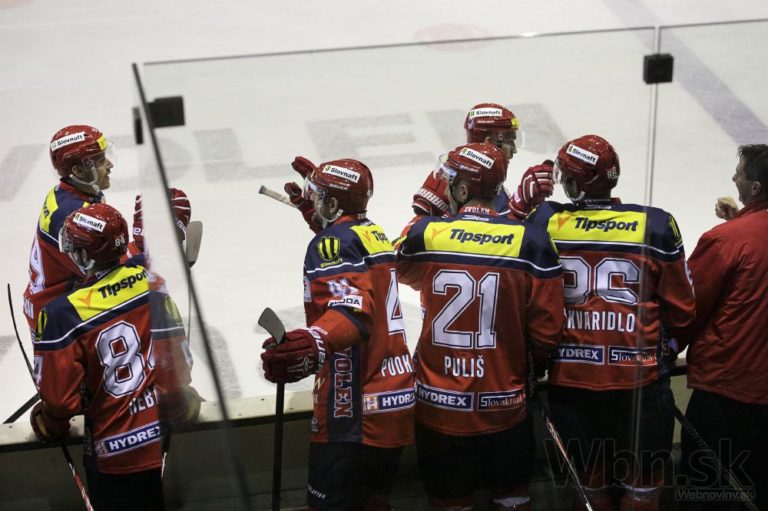 Radosť Zvolenčanov zo streleného gólu počas zápasu 5. kola hokejovej Tipsport extraligy medzi HKM Zvolen - HK Nitra. Zvolen, 21. september 2014. Foto: SITA/Ján Viazanička