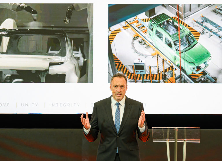 Výkonný riaditeľ JLR Nitra Guillermo Mancholas počas prehliadky vo výrobných priestoroch fabriky Jaguar Land Rover (JLR) Nitra počas ich prehliadky v rámci 5. výročia otvorenia závodu. Nitra, 25. október 2023. Foto: SITA/Martin Havran
