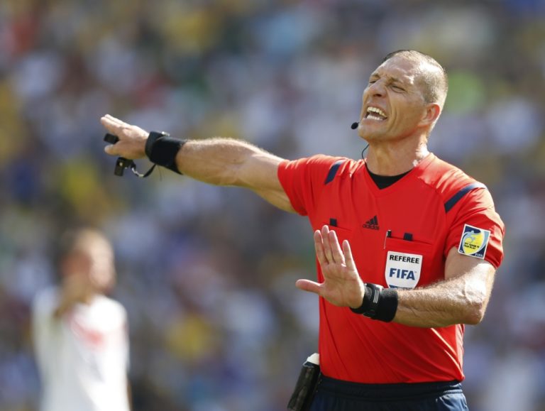 Rozhodca Nestor Pitana počas štvrťfinálového zápasu na MS v Brazílii medzi Nemeckom a Francúzskom. Foto: SITA/AP