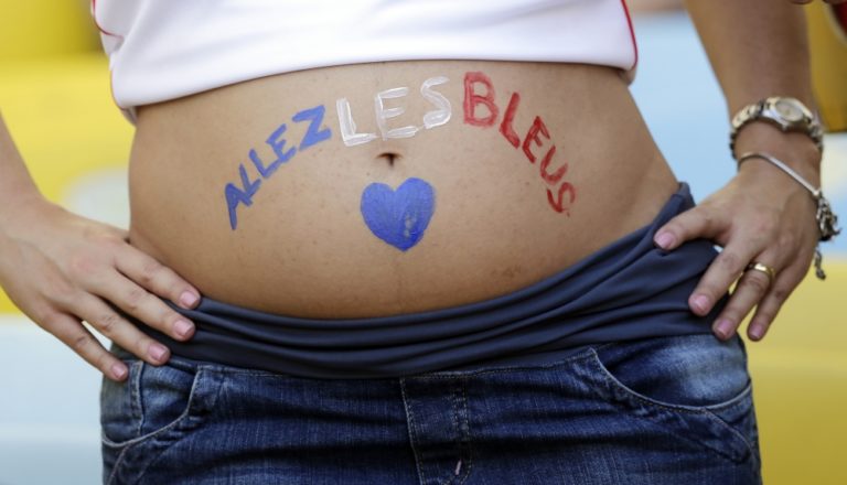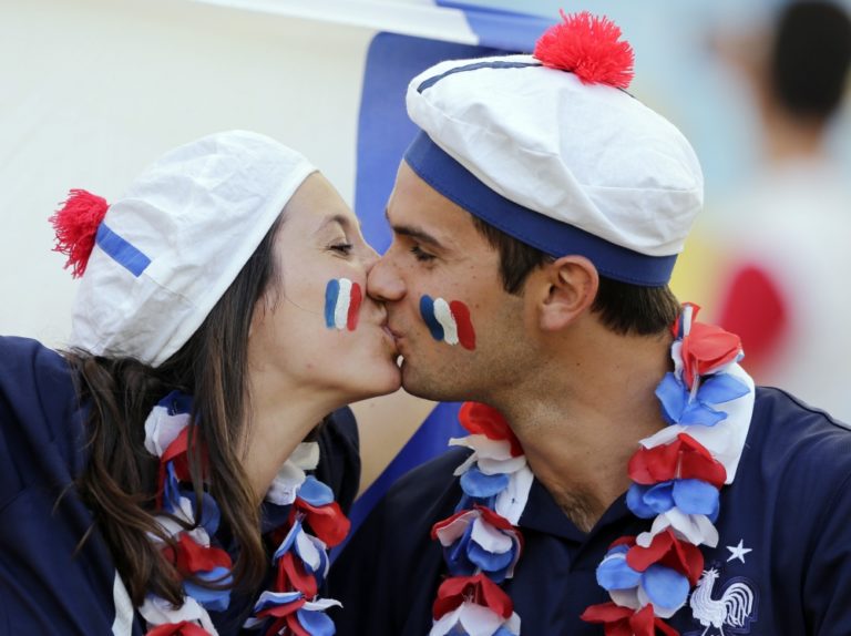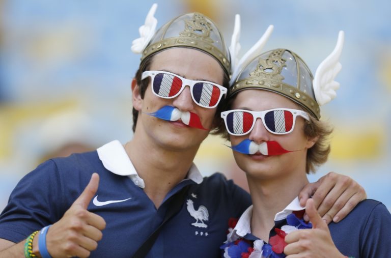 Fanúšikovia Francúzka počas piatkového štvrťfinálového zápasu na svetovom šampionáte v Brazílii. Foto: SITA/AP