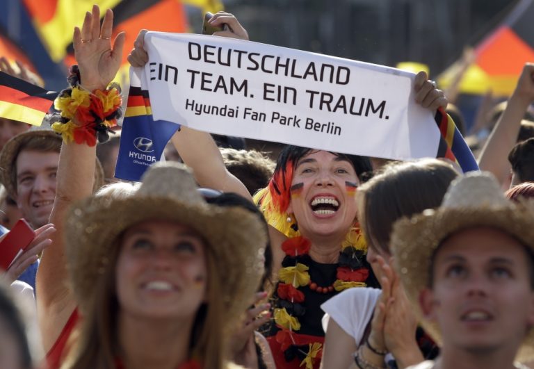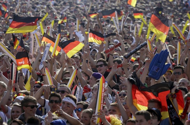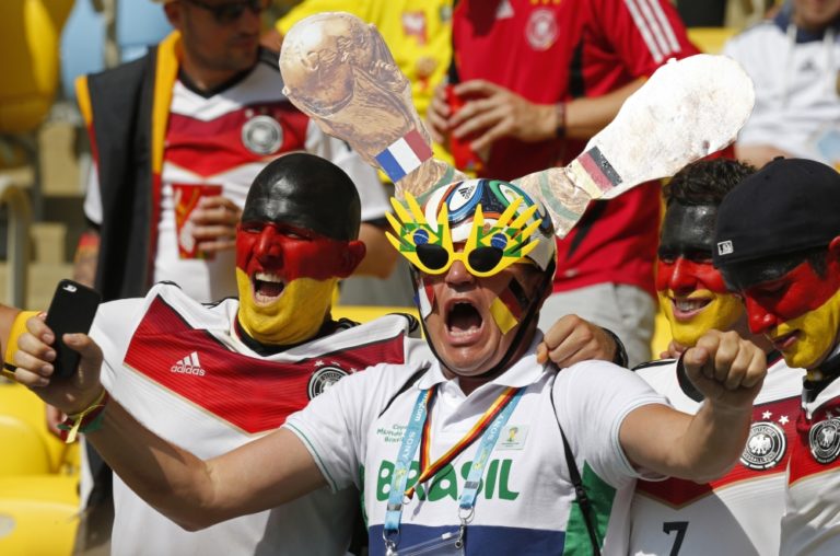 Fanúšikovia Nemecka počas piatkového štvrťfinálového zápasu na svetovom šampionáte v Brazílii. Foto: SITA/AP