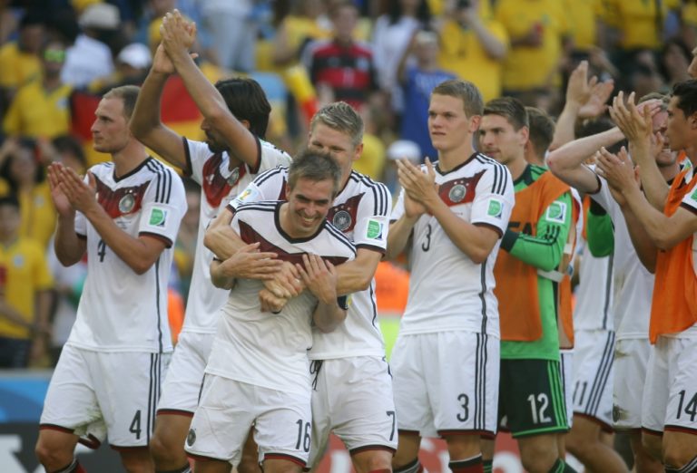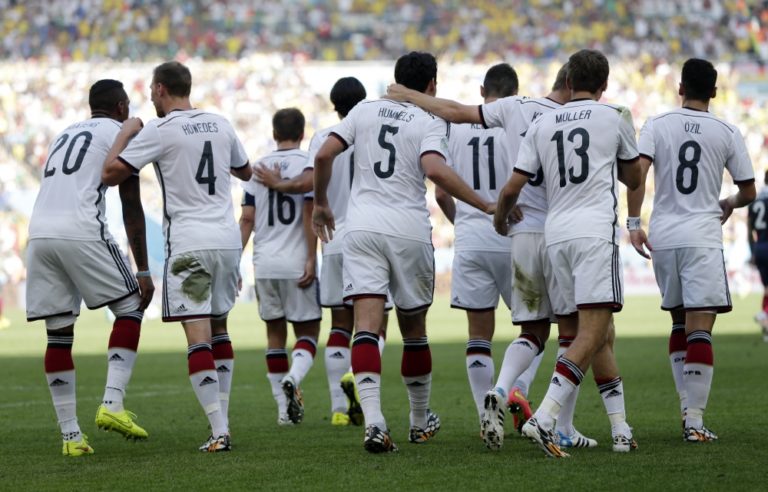 Radosť nemeckých futbalistov po štvrťfinálovom zápase na MS v Brazílii proti Francúzsku. Foto: SITA/AP