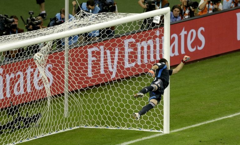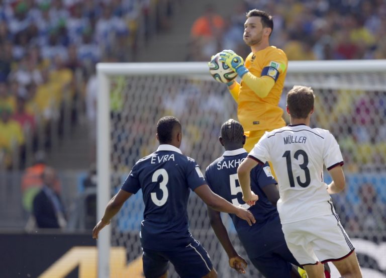 Zákrok Francúzskeho brankára Huga Llorisa počas štvrťfinálového zápasu na MS v Brazílii proti Nemecku. Foto: SITA/AP