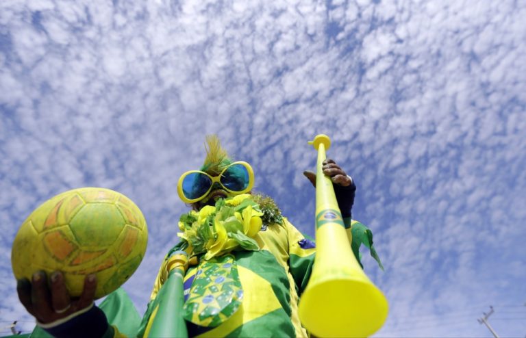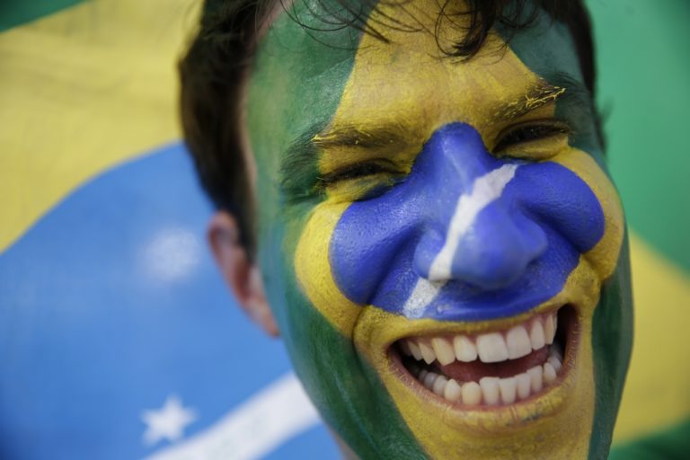 Fanúšik Brazílie počas piatkového štvrťfinálového zápasu na svetovom šampionáte. Foto: SITA/AP