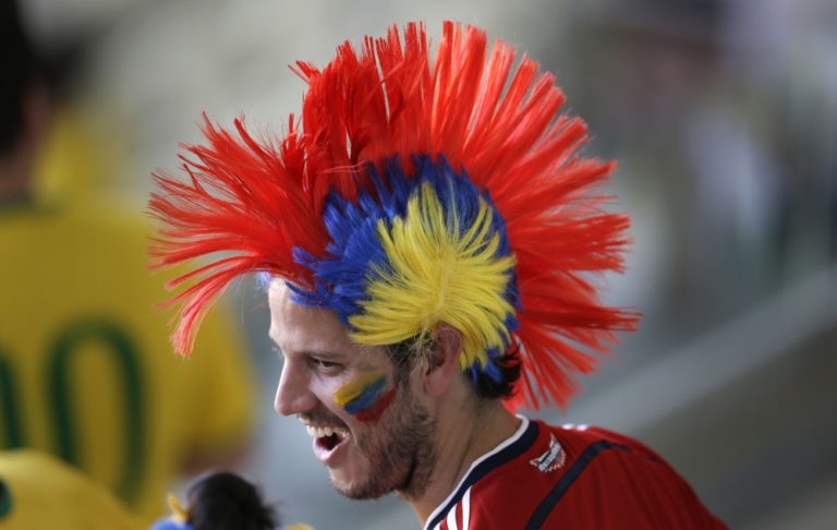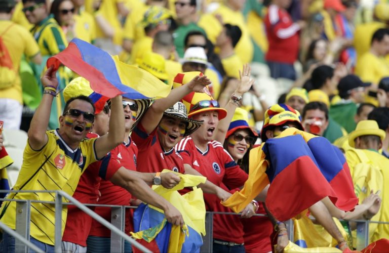 Fanúšikovia Kolumbie počas piatkového štvrťfinálového zápasu na svetovom šampionáte. Foto: SITA/AP