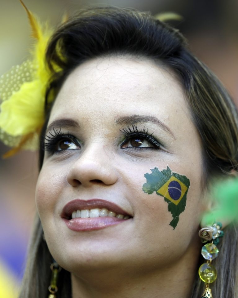 Fanúšička Brazílie počas piatkového štvrťfinálového zápasu na svetovom šampionáte. Foto: SITA/AP