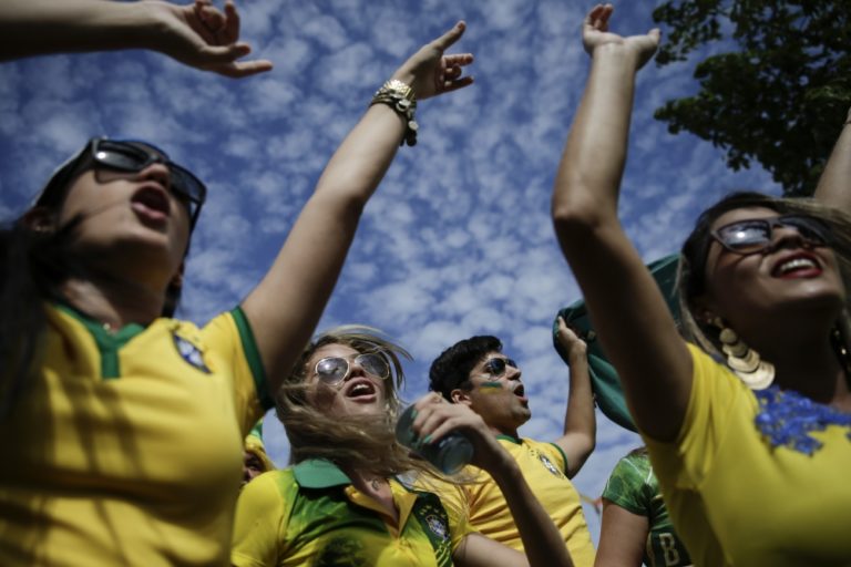 Fanúšičky Brazílie počas piatkového štvrťfinálového zápasu na svetovom šampionáte. Foto: SITA/AP