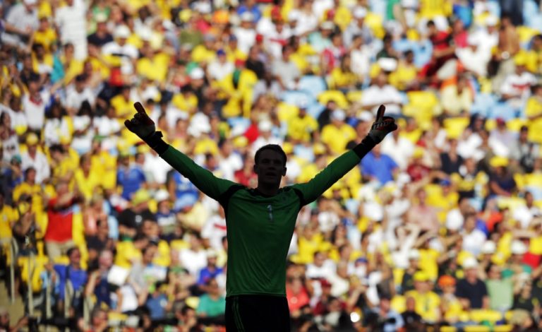 Radosť nemeckého brankára Manuela Neuera počas štvrťfinálového zápasu na MS v Brazílii proti Francúzsku. Foto: SITA/AP