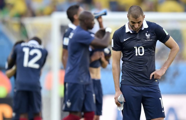 Smútok Francúza Karima Benzemu po štvrťfinálovom zápase na MS v Brazílii proti Nemecku. Foto: SITA/AP
