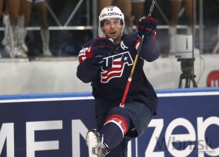 Radosť amerického útočníka Craiga Smitha do siete Kazachstanu počas piatkového zápasu na MS v hokeji. Foto: SITA/AP