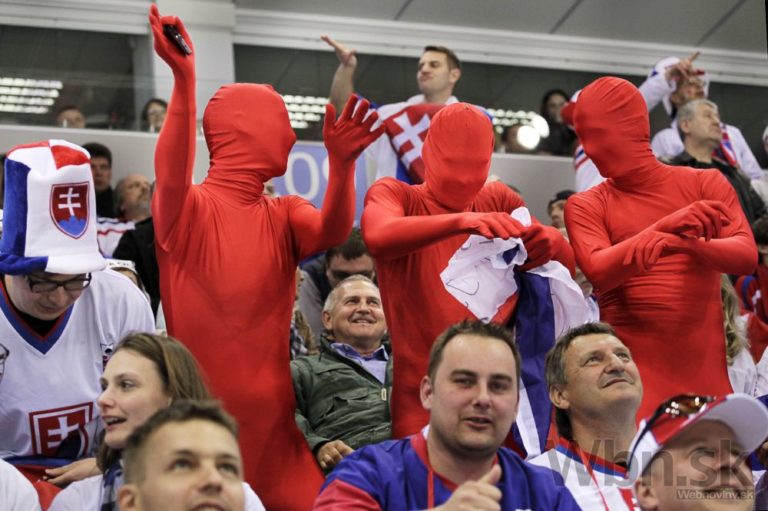 Fanúšikovia Slovenska počas zápasu Slovensko - Česko základnej skupiny Majstrovstiev sveta v ľadovom hokeji 2014 v Minsku. Bielorusko, Minsk, 9. máj 2014. Foto: SITA/Ján Viazanička