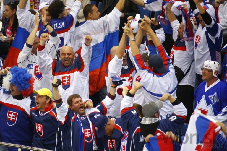 Radosť slovenských fanúšikov počas zápasu s Českom na MS v Minsku. Foto: SITA/AP