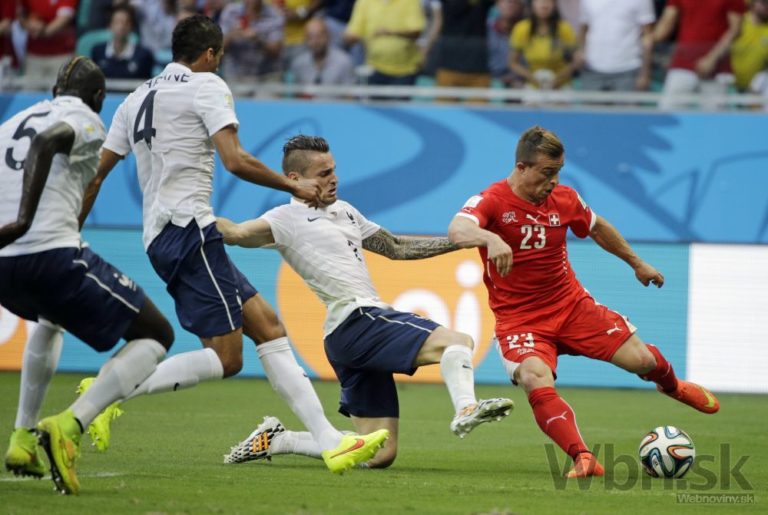 Piatkové duely na XX. majstrovstvách sveta vo futbale v Brazílii. Zápas E-skupiny medzi Švajčiarskom a Francúzskom v Aréne Fonte Nova Foto: SITA/AP