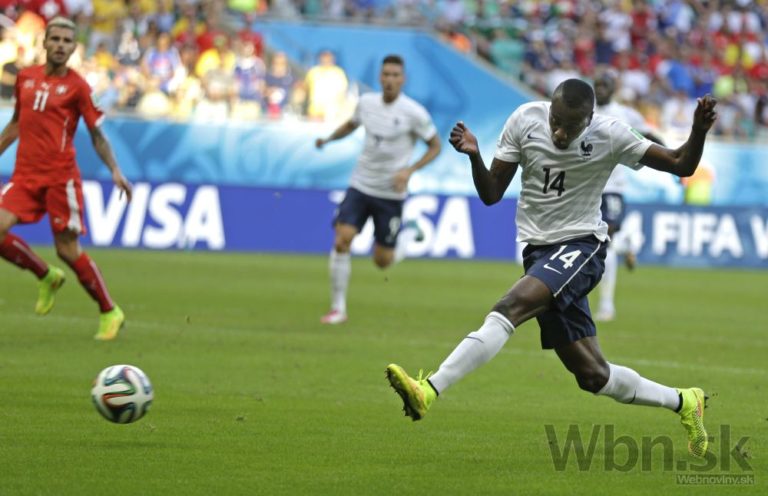 Francúz Blaise Matuidi sa pripravuje streliť Švajčiarom druhý gól v zápase E-skupiny medzi Švajčiarskom a Francúzskom v aréne Fonte Nova. Piatkové duely na XX. majstrovstvách sveta vo futbale v Brazílii. Foto: SITA/AP