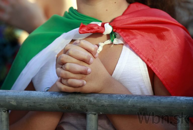 Taliansky fanúšik vzpína ruky a modlí sa za víťazstvo svojho tímu v D-skupine na štadióne Arena Pernambuco v Recife. Piatkové duely na XX. majstrovstvách sveta vo futbale v Brazílii. Foto: SITA/AP