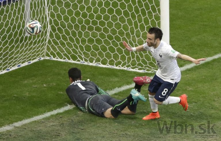 Francúz Mathieu Valbuena sa raduje z tretieho gólu, ktorý skončil v švajčiarskej bránke. Piatkové duely na XX. majstrovstvách sveta vo futbale v Brazílii. Zápas E-skupiny medzi Švajčiarskom a Francúzskom v Aréne Fonte Nova Foto: SITA/AP