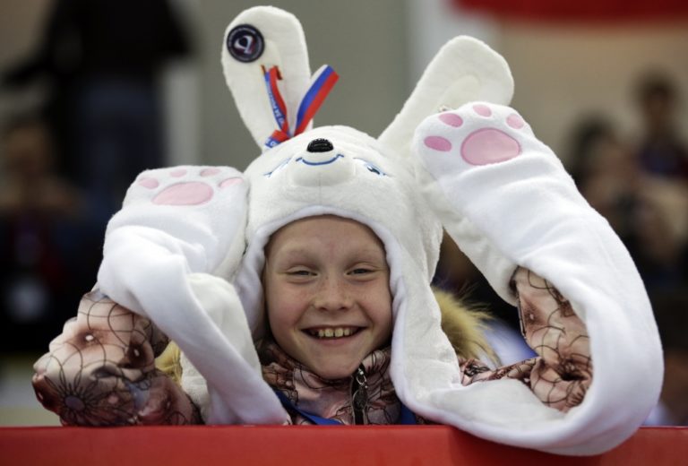 Malý ruský fanúšik na tribúne počas stredajšieho zjazdu žien. Foto: SITA/AP
