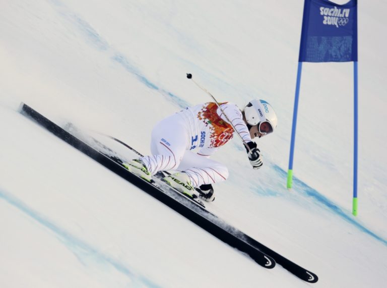 Ruská lyžiarka Maria Bedarevová v cielu stredajšieho zjazdu žien. Foto: SITA/AP
