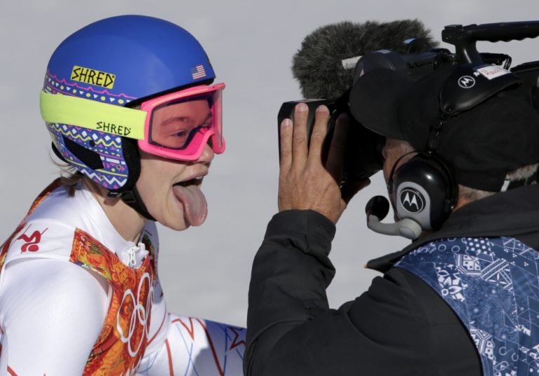 Američanka Laurenne Rossová v cieli stredajšieho zjazdu žien robí grimasy do televízie. Foto: SITA/AP