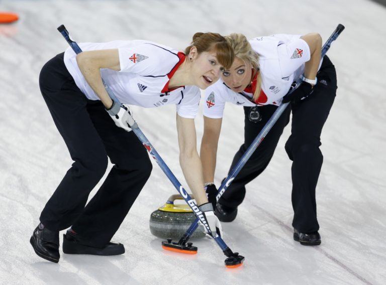 Britské reprezentantky v curlingu počas stredajšieho zápasu na olympiáde v Soči Foto: SITA/AP