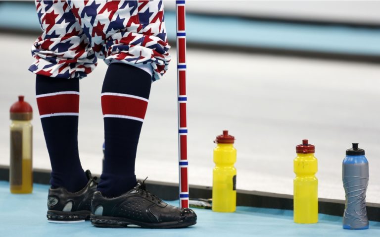 Nórsky reprezentant v curlingu počas stredajšieho zápasu na olympijskom turnaji. Foto: SITA/AP