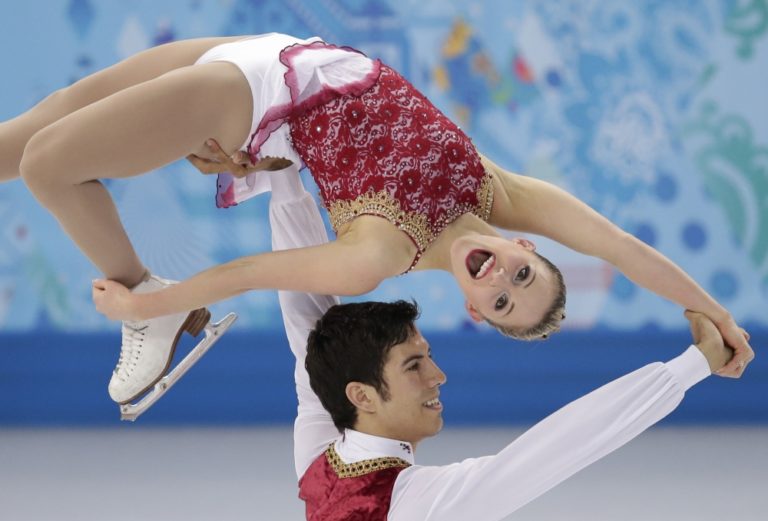 Kanadskí reprezentanti Paige Lawrencová a Rudi Swiegers počas súťaže voľné jázd športových dvojíc. Foto: SITA/AP
