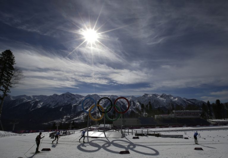 V Soči vládne krásne slnečné počasie, diváci sa môžu aj opaľovať.. Foto: SITA/AP