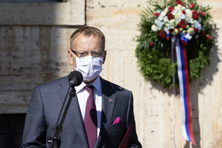 Predseda Národnej rady SR Boris Kollár v príhovore počas pietnej spomienky na obete okupácie Československa vojskami Varšavskej zmluvy v roku 1968 pred budovou Univerzity Komenského v Bratislave. Bratislava, 21. august 2020. Foto: SITA/Branislav Bibel