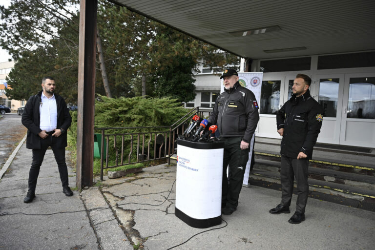 Zľava: Generálny riaditeľ sekcie informatiky, bezpečnosti a telekomunikácií MV SR Martin Hrachala a minister vnútra SR Matúš Šutaj Eštok počas tlačovej konferencie ministra vnútra SR na tému: Ministerstvo vnútra (MV) SR začína s pilotnou inštaláciou kamerového systému na školách, v areáli Strednej odbornej školy Policajného zboru v Pezinku. Pezinok, 20. december 2024. Foto: archívne, SITA/Milan Illík