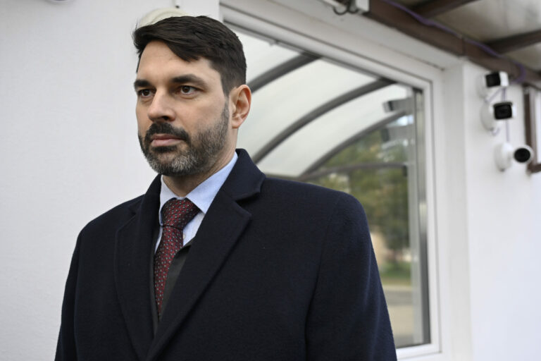 Generálny riaditeľ sekcie informatiky, bezpečnosti a telekomunikácií MV SR Martin Hrachala počas tlačovej konferencie ministra vnútra SR na tému: Ministerstvo vnútra (MV) SR začína s pilotnou inštaláciou kamerového systému na školách, v areáli Strednej odbornej školy Policajného zboru v Pezinku. Pezinok, 20. december 2024. Foto: SITA/Milan Illík