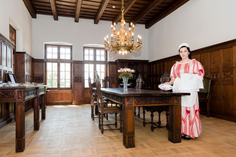 Figurantka predstavujúca slúžku v Čákyho jedálni počas otvorenia Budatínskeho hradu. Žilina, 31. júl 2016. Foto: SITA/Milo Fabian