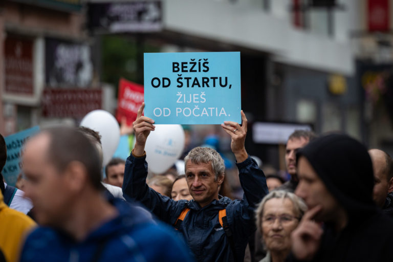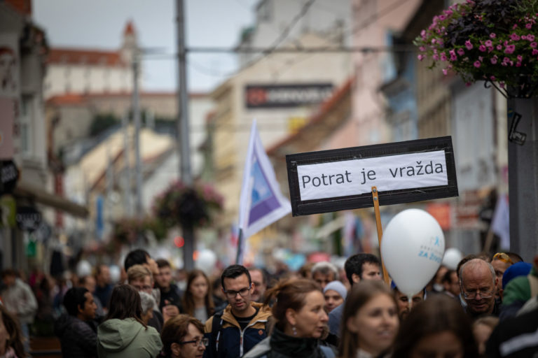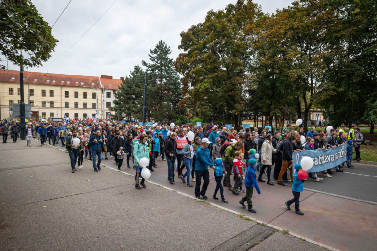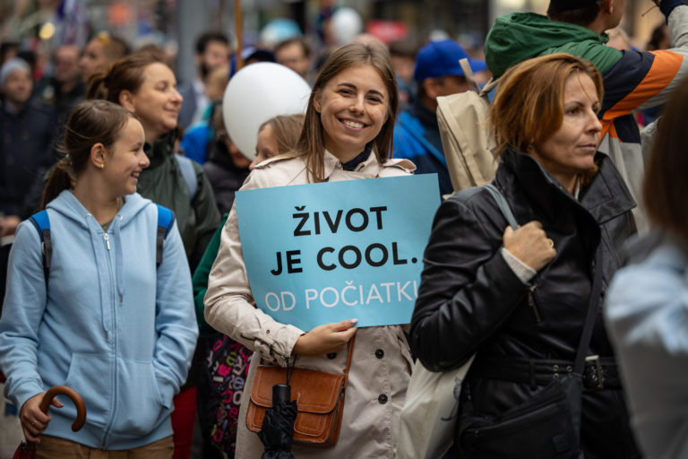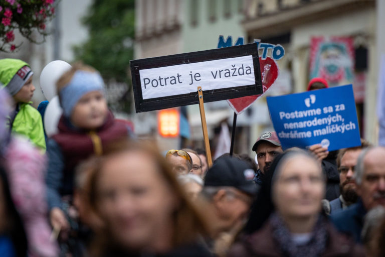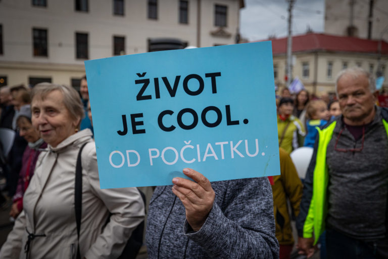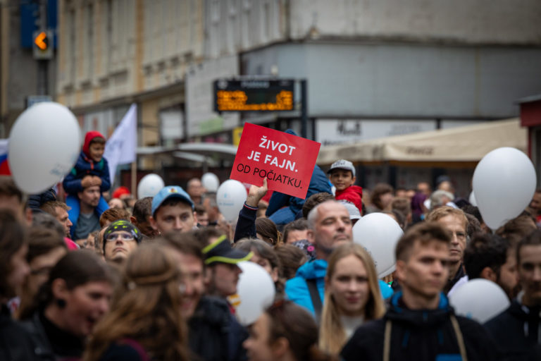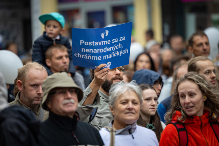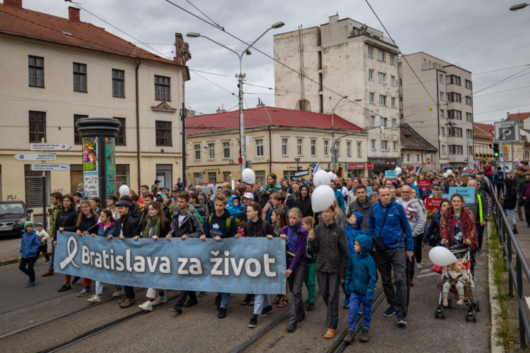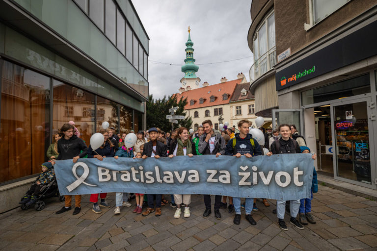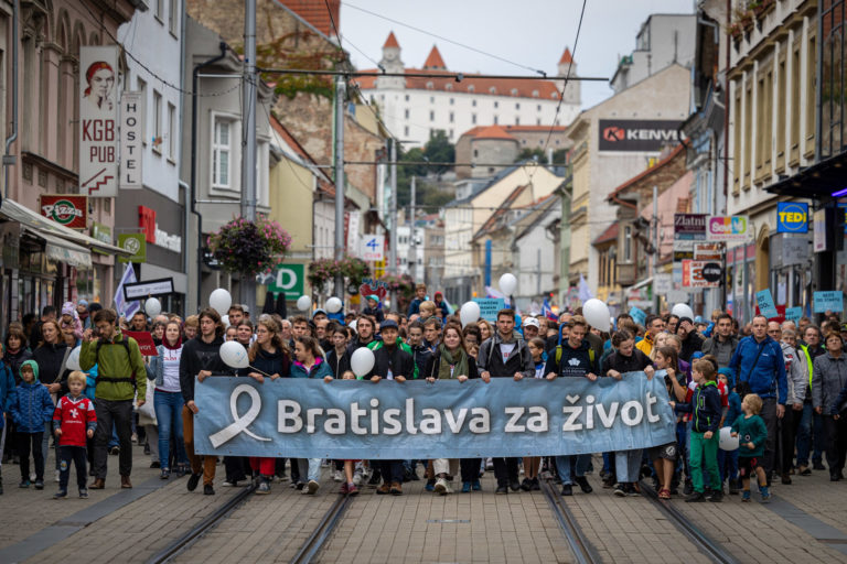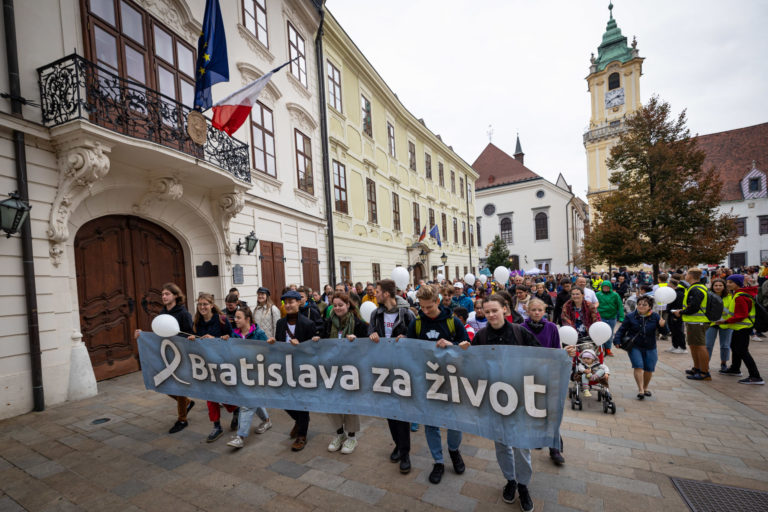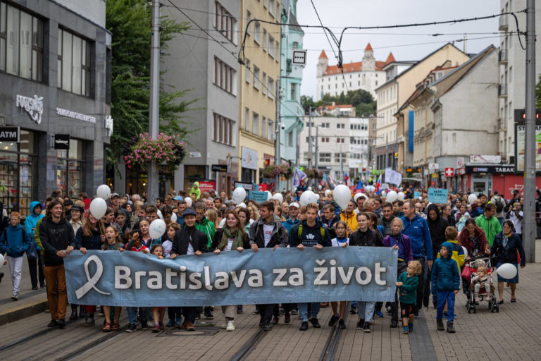 Účastníci pochodu Bratislava za život v uliciach hlavného mesta. Bratislava, 24. september 2023. Foto: SITA/Jana Birošová
