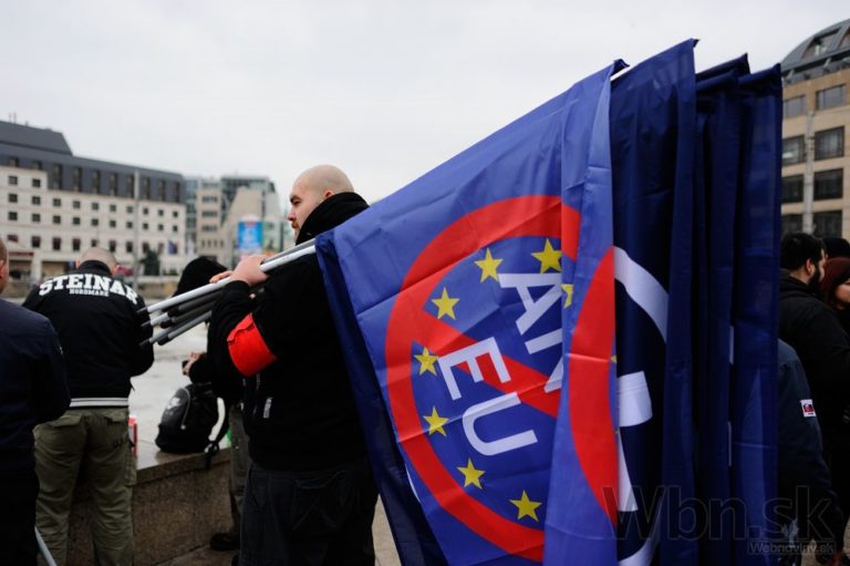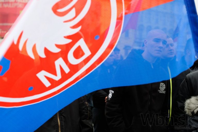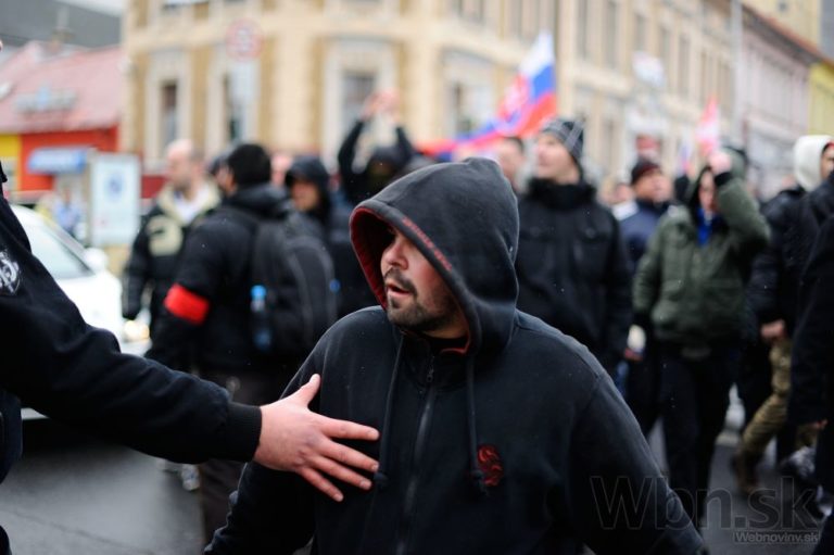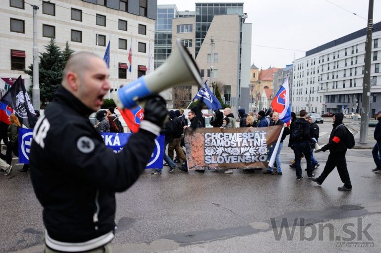 Atmosféra počas pochodu nacionalistov za samostatné Slovensko v centre Bratislavy. Bratislava, 14. marec 2015. Foto: SITA/Robert Tappert