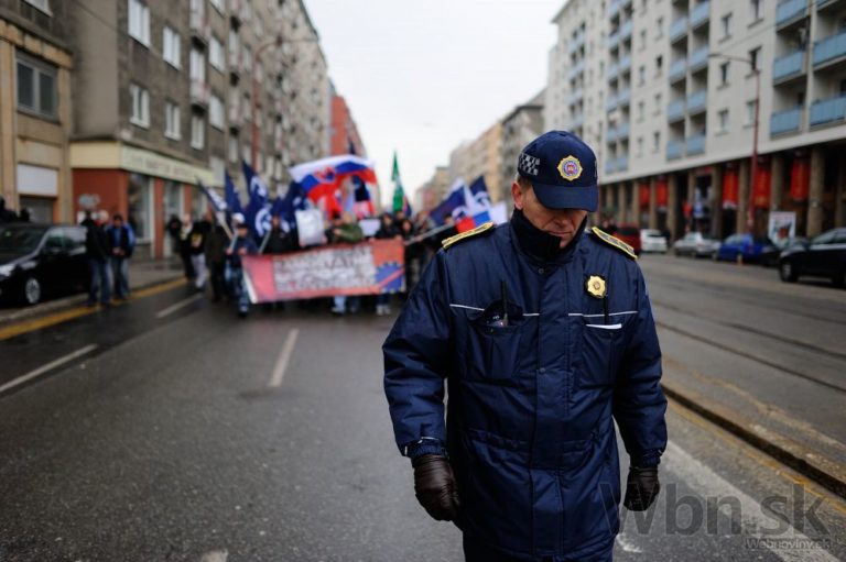 Poicajti počas pochodu nacionalistov za samostatné Slovensko. Bratislava, 14. marec 2015. Foto: SITA/Robert Tappert