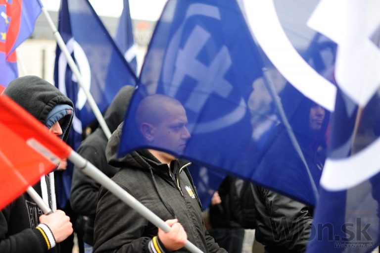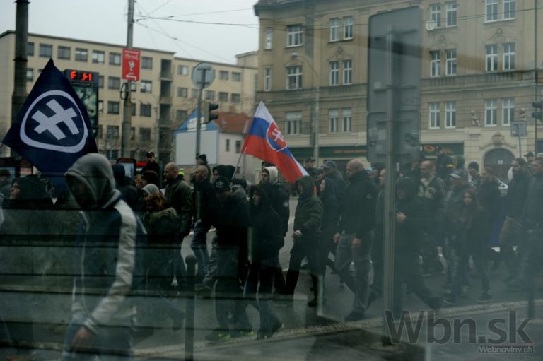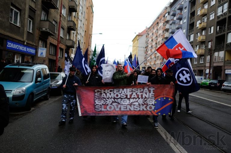 Účastníci pochodu nacionalistov za samostatné Slovensko. Bratislava, 14. marec 2015. Foto: SITA/Robert Tappert