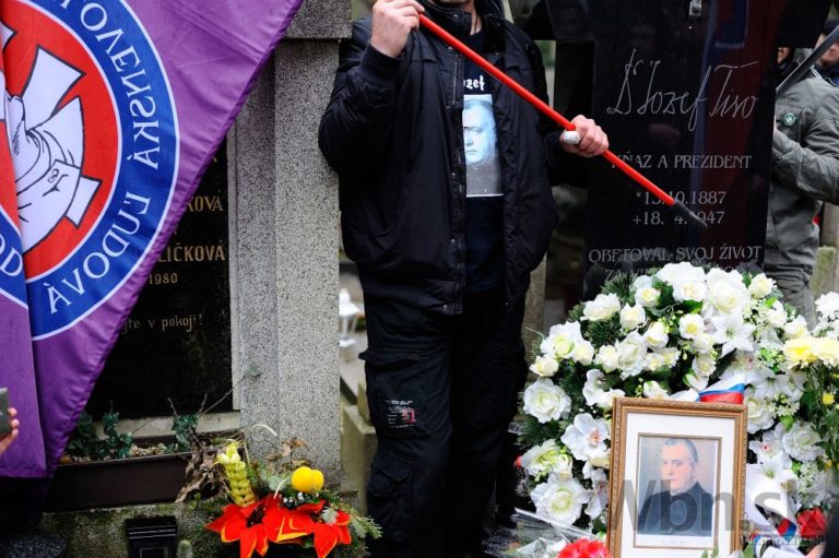 Martinský cintorín počas pochodu nacionalistov za samostatné Slovensko, ktorí sa dostali až k hrobu bývalého prezidenta vojnového slovenského štátu Jozefa Tisa. Bratislava, 14. marec 2015. Foto: SITA/Robert Tappert