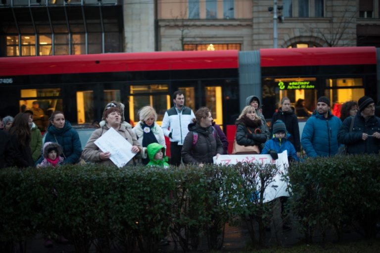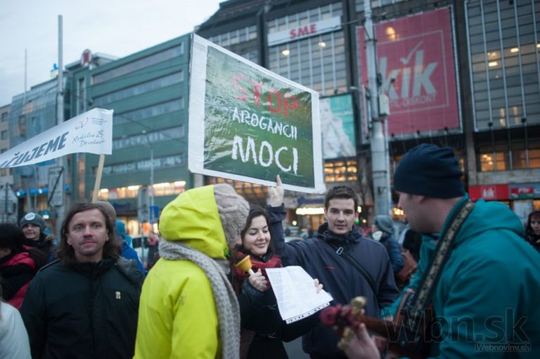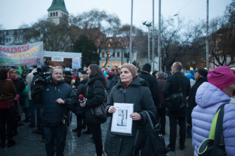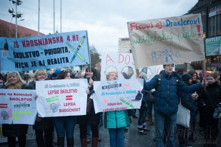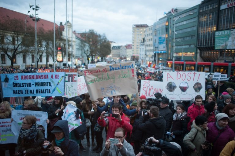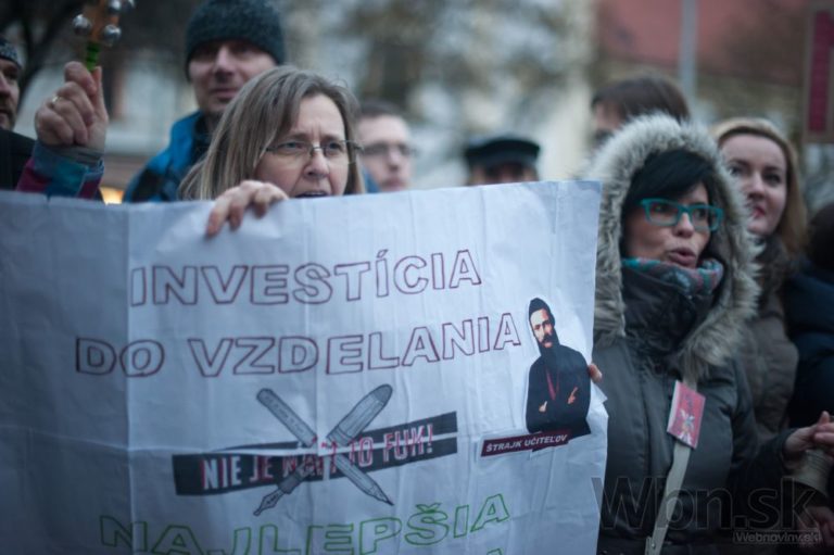 Účastníci akcie Učitelia, ďakujeme! - pochod vďaky rodičov a priateľov škôl na Námestí SNP v Bratislave. Bratislava, 10. február 2016. Foto: SITA/Urban Klement