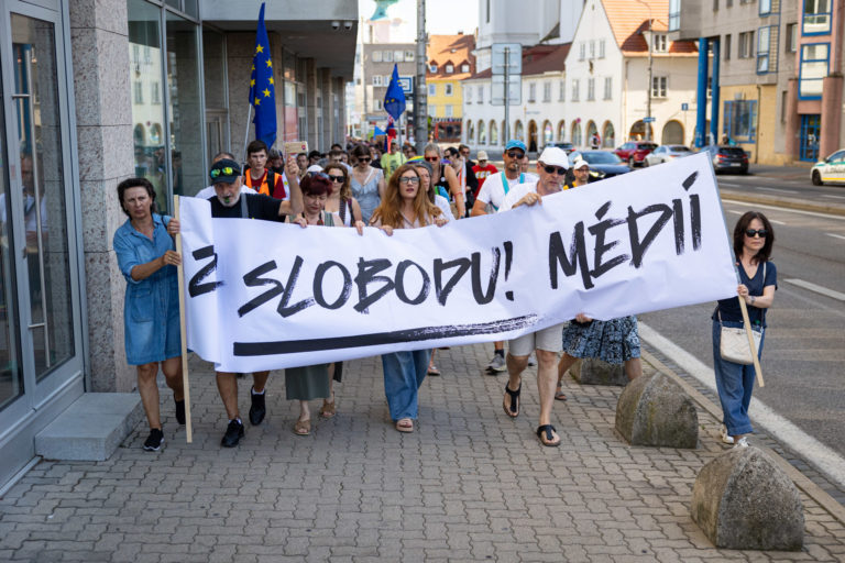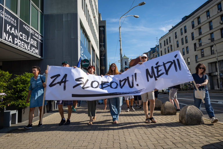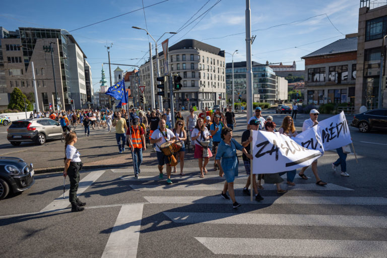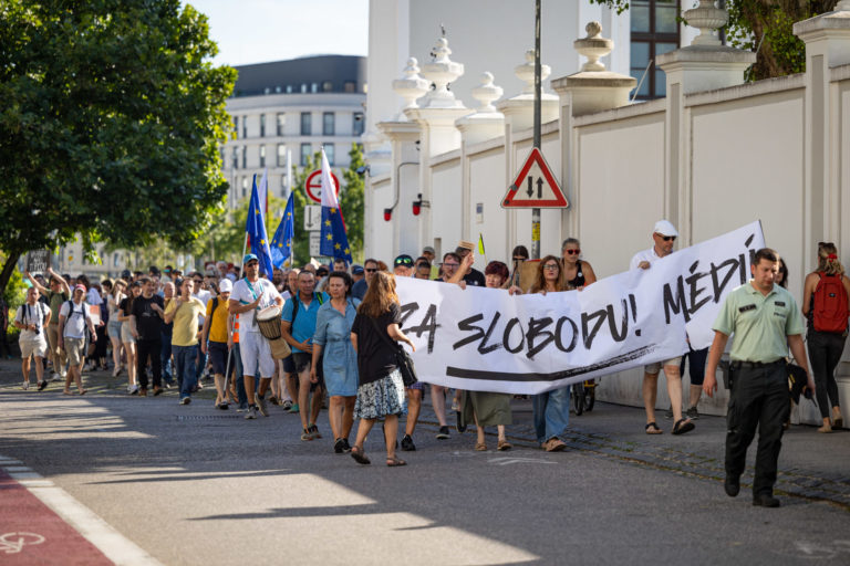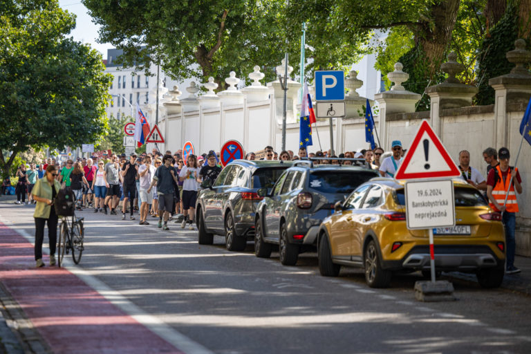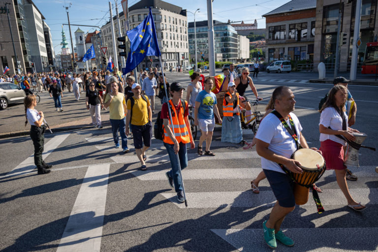 Účastníci počas občianskeho pochodu Za slobodu! Za demokraciu. Bratislava, 18. jún 2024. Foto: SITA/Jana Birošová