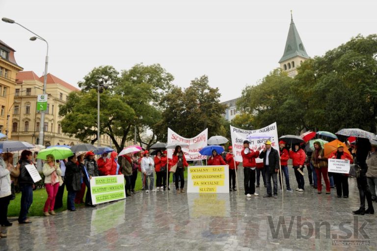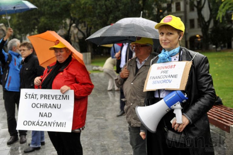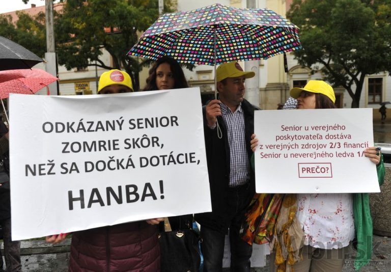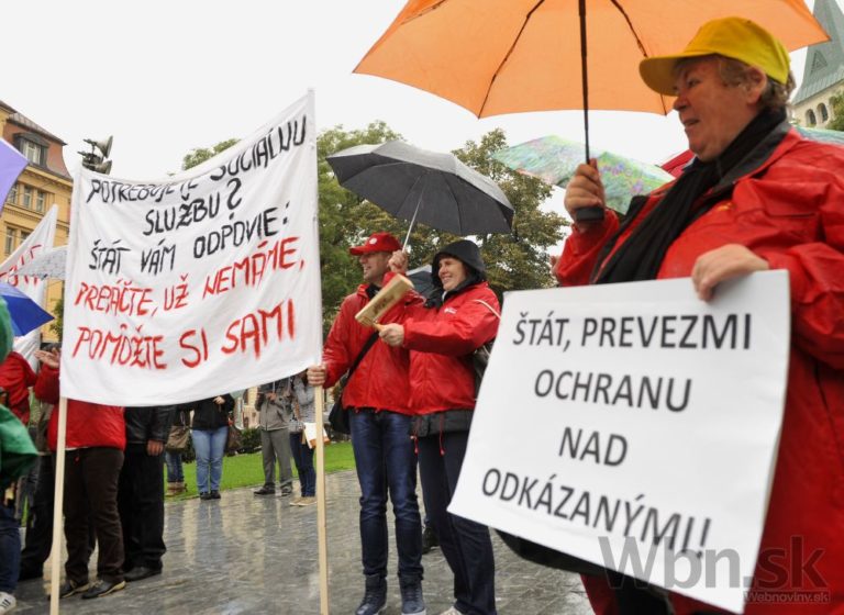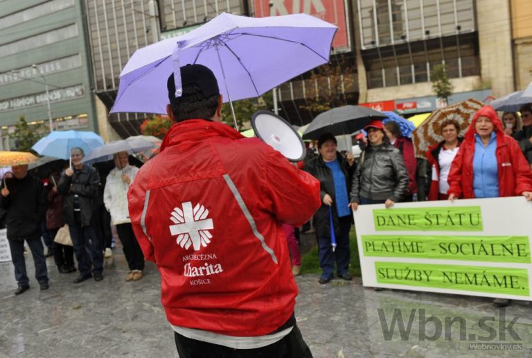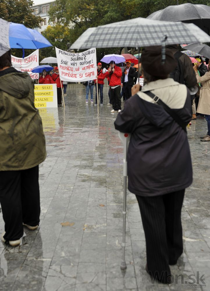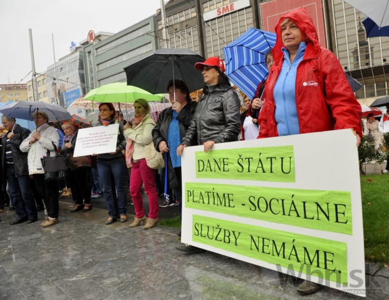 Účastníci pochodu za spravodlivé financovanie sociálnych služieb, ktorý organizuje Asociácia poskytovateľov sociálnych služieb v SR, Združenie seniorských prijímateľov sociálnych služieb a Slovenská katolícka charita. Bratislava, 17. október 2014. Foto: SITA/Ján Slovák
