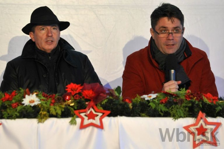 Zľava: Generálny riaditeľ RTVS Václav Mika a programový riaditeľ televíznej časti RTVS Tibor Búza počas predstavenia projektu Slovensko Advent 2014 a vianočnej štruktúry RTVS v rámci otvorenia Vianočných trhov POD PYRAMÍDOU. Bratislava, 1. december 2014. Foto: SITA/Ján Slovák