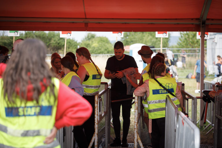 Účastníci prechádzajú cez kontrolu počas prvého dňa 25. ročníka multižánrového festivalu Pohoda 2022 na letisku v Trenčíne. Trenčín, 7. júl 2022. Foto: SITA/Branislav Bibel