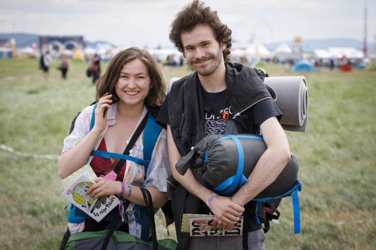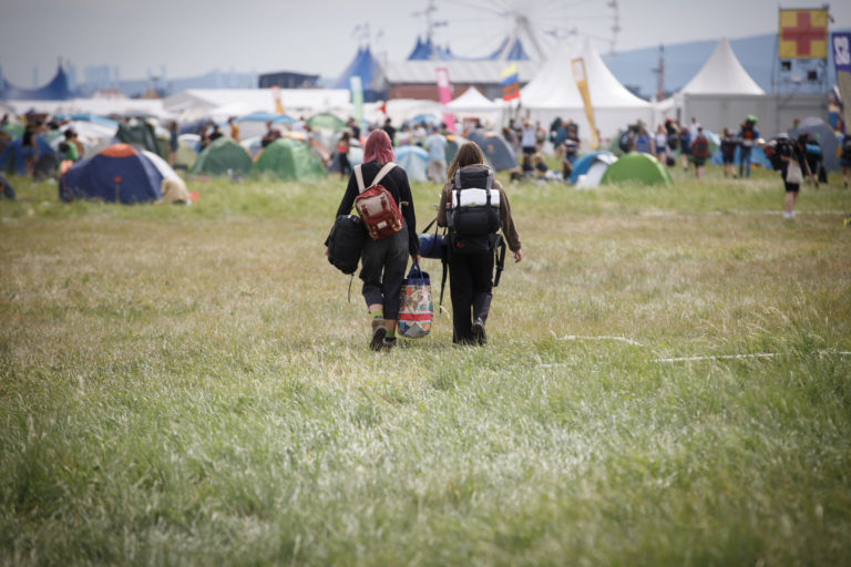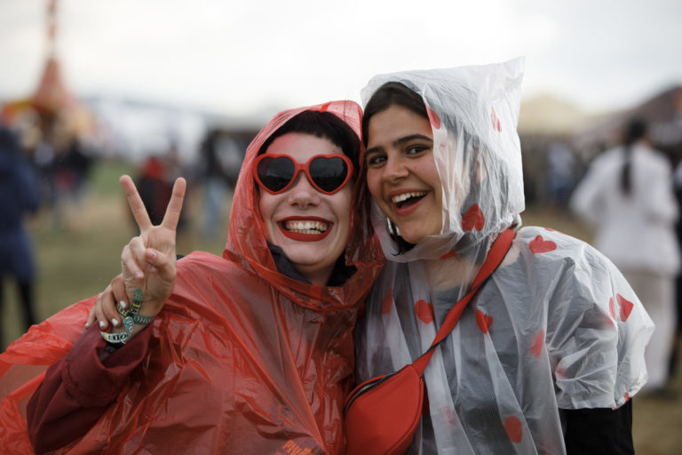 Návštevníčky počas druhého dňa 25. ročníka multižánrového festivalu Pohoda 2022 na letisku v Trenčíne. Trenčín, 8. júl 2022. Foto: SITA/Branislav Bibel