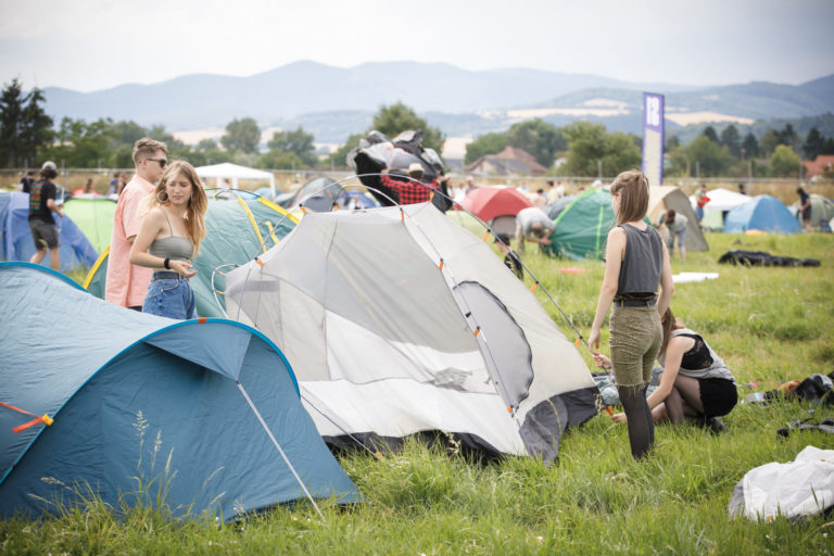 Účastníci v stanovom mestečku počas prvého dňa 25. ročníka multižánrového festivalu Pohoda 2022 na letisku v Trenčíne. Trenčín, 7. júl 2022. Foto: SITA/Branislav Bibel