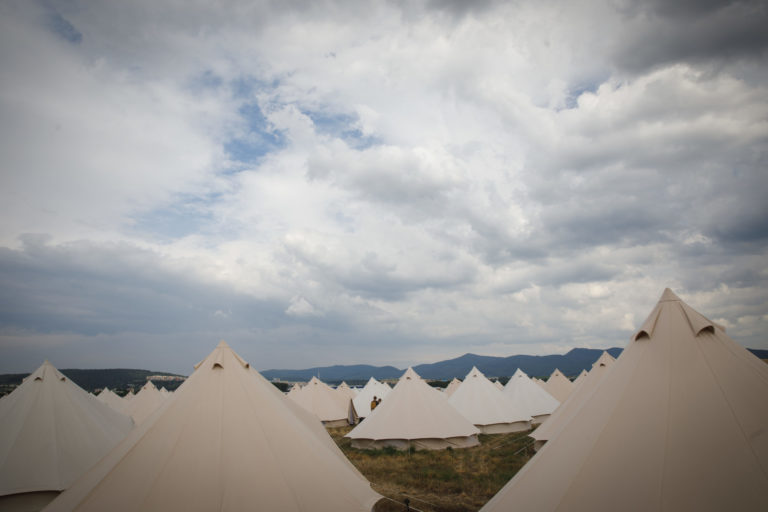 Stanové mestečko počas prvého dňa 25. ročníka multižánrového festivalu Pohoda 2022 na letisku v Trenčíne. Trenčín, 7. júl 2022. Foto: SITA/Branislav Bibel